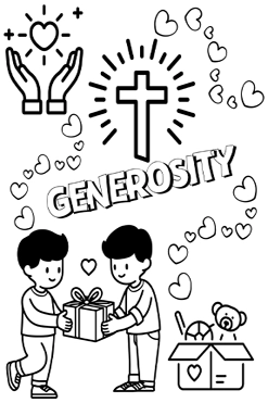 Teach the value of giving through this joyful, hand-drawn coloring sheet.